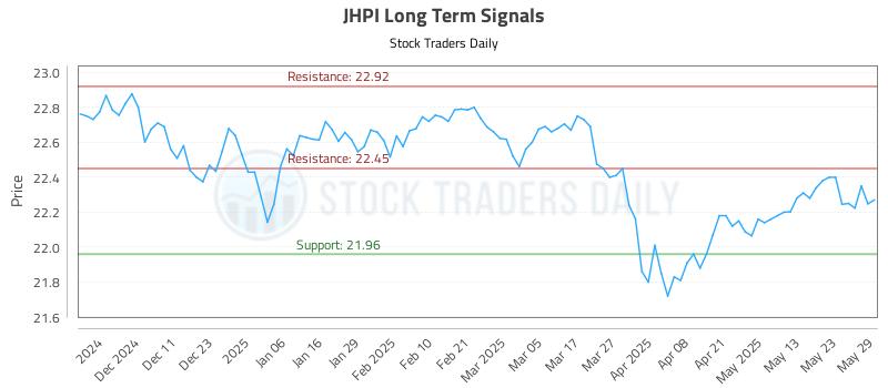 The technical summary data tells us to buy JHPI near 21.96 with an upside target of 22.44. This data also tells us to set a stop loss @ 21.9 to protect against excessive loss in case the stock begins to move against the trade. 21.96 is the first level of support below 22.3025 , and by rule, any test of support is a buy signal. In this case, support 21.96 would be being tested, so a buy signal would exist.