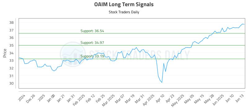 The technical summary data tells us to buy OAIM near 36.54, but there is no current upside target from the summary table. In this case we should wait until either an update to the summary table has been made (which usually happens at the beginning of every trading day), or until the position has been stopped. The data does tell us to set a stop loss 36.43 to protect against excessive loss in case the stock begins to move against the trade. 36.54 is the first level of support below 37.3577, and by rule, any test of support is a buy signal. In this case, if support 36.54 is being tested, a buy signal would exist.